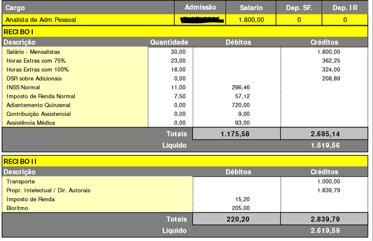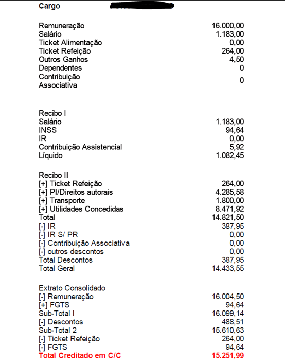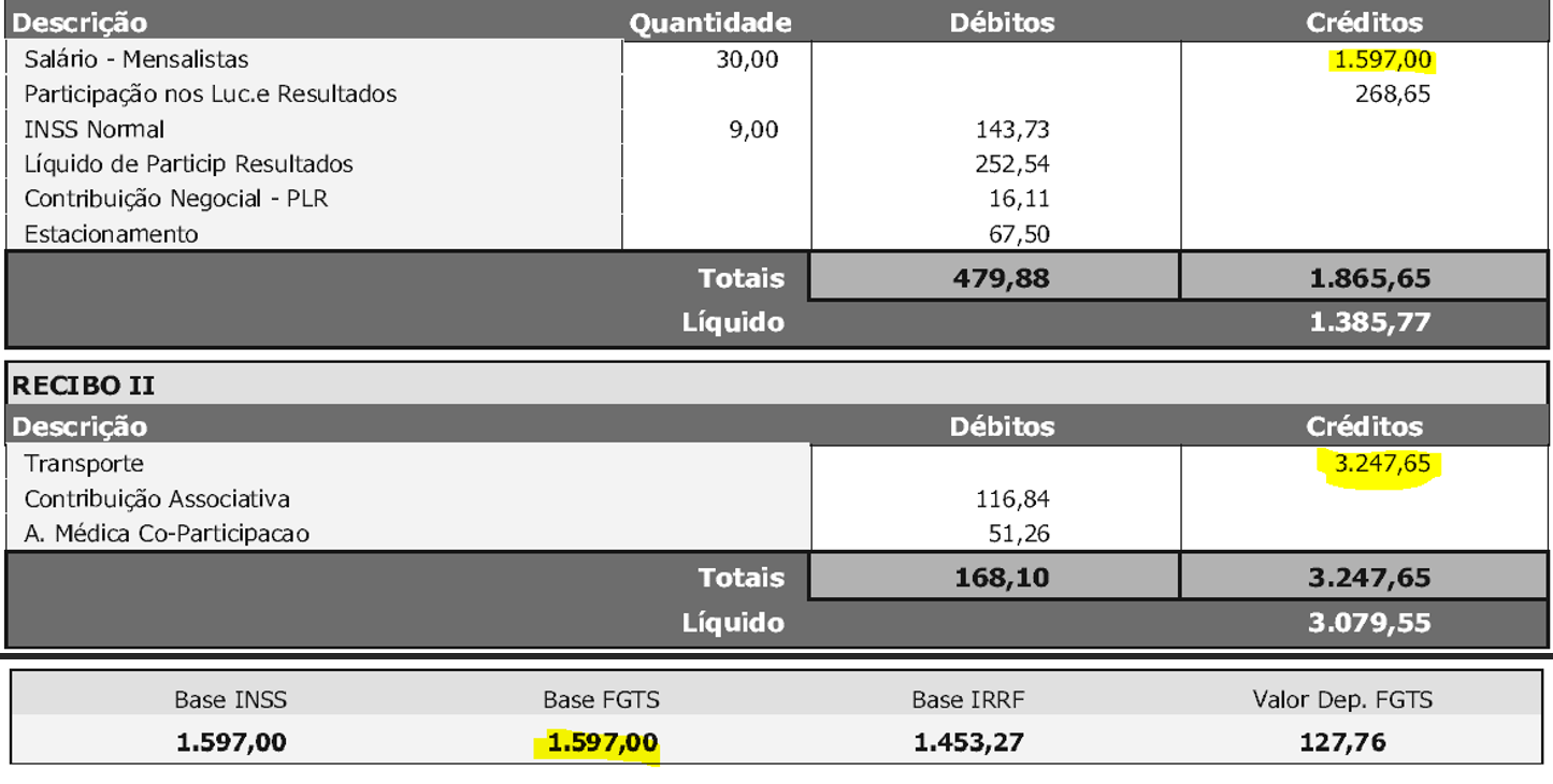 A situação é absurda que alguns chegam a receber de vale-transporte, por exemplo, mais que o dobro do salário, como é o caso abaixo: